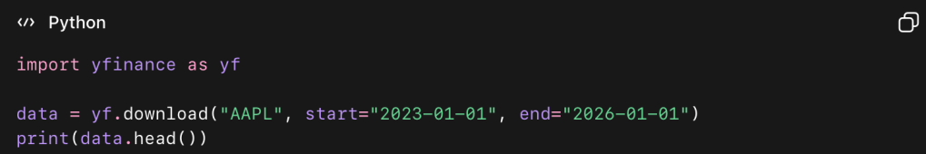 Marktdaten abrufen. Mit der Bibliothek yfinance kannst du historische Kursdaten laden, um Strategien zu testen: